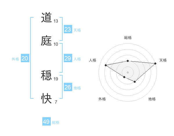 道庭 穏快さんの天格は23画の5点!
