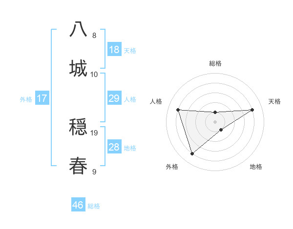 八城 穏春さんの天格は18画の4点!