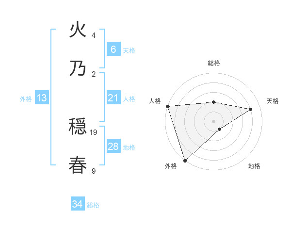 火乃 穏春さんを姓名の画数から五運を鑑定