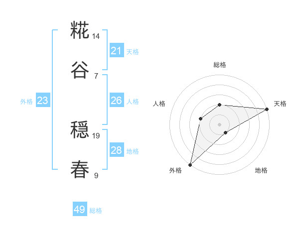 糀谷 穏春さんの総格は49画の2点!
