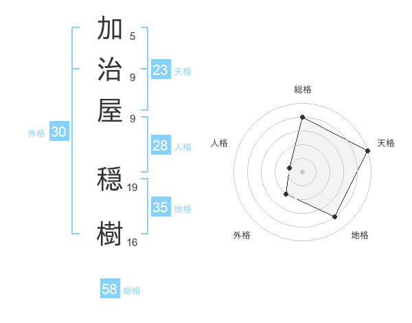 加治屋 穏樹さんを姓名の画数から五運を鑑定