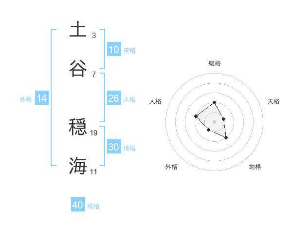 土谷 穏海さんの総格は40画の2点