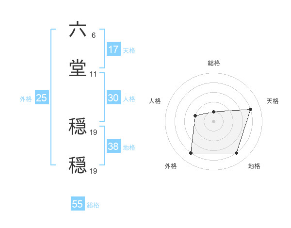 六堂 穏穏さんを姓名の画数から五運を鑑定
