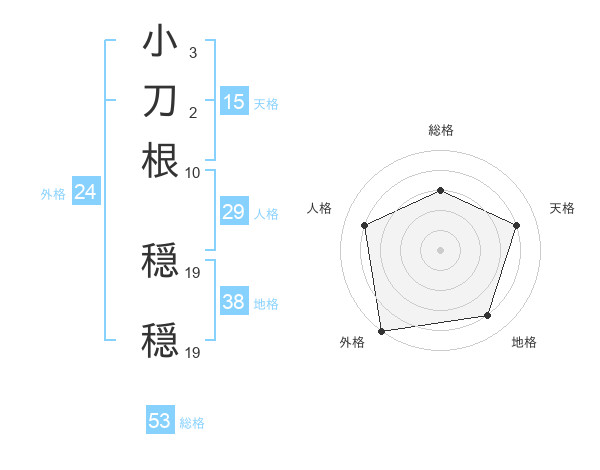 小刀根 穏穏さんを姓名の画数から五運を鑑定