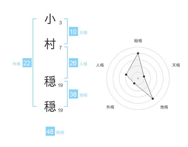 小村 穏穏さんの外格は22画の1点!