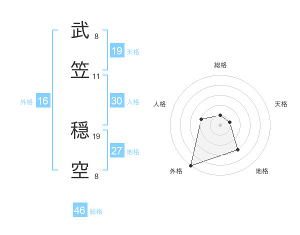 武笠 穏空さんを姓名の画数から五運を鑑定