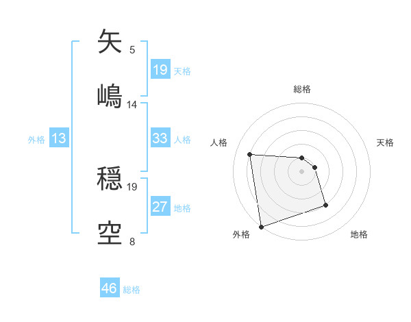 矢嶋 穏空さんを姓名の画数から五運を鑑定