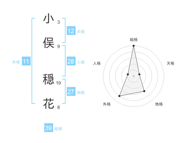 小俣 穏花さんの外格は11画の4点!