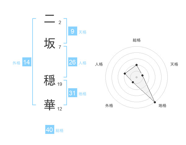 二坂 穏華さんの総格は40画の2点!