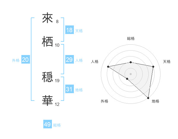 來栖 穏華さんを姓名の画数から五運を鑑定