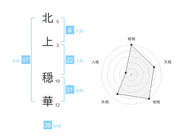 北上 穏華さんの総格は39画の5点!