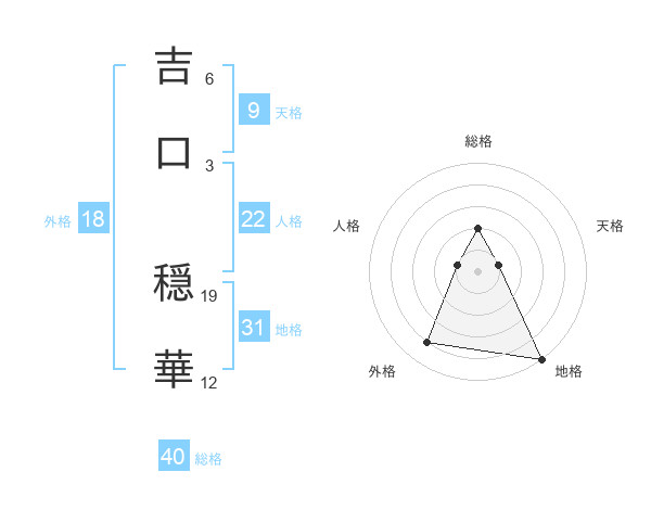 吉口 穏華さんの総格は40画の2点!