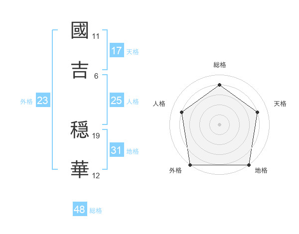 國吉 穏華さんの外格は23画の5点!