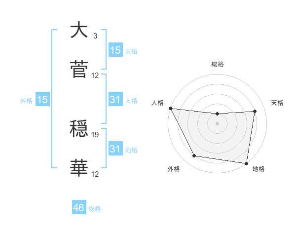 大菅 穏華さんの総格は46画の1点!