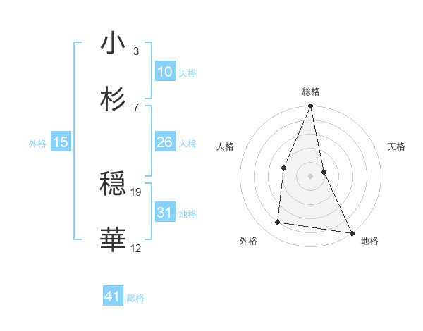 小杉 穏華さんの総格は41画の5点!