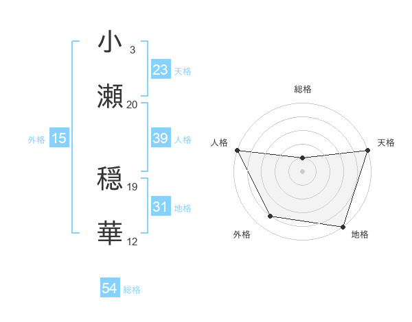 小瀬 穏華さんの天格は23画の5点!