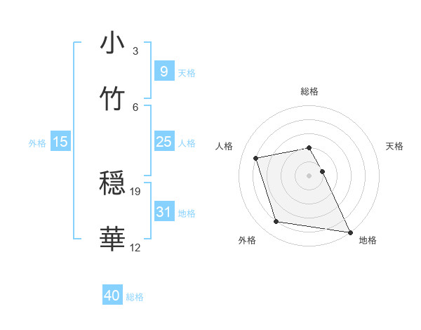 小竹 穏華さんの総格は40画の2点!