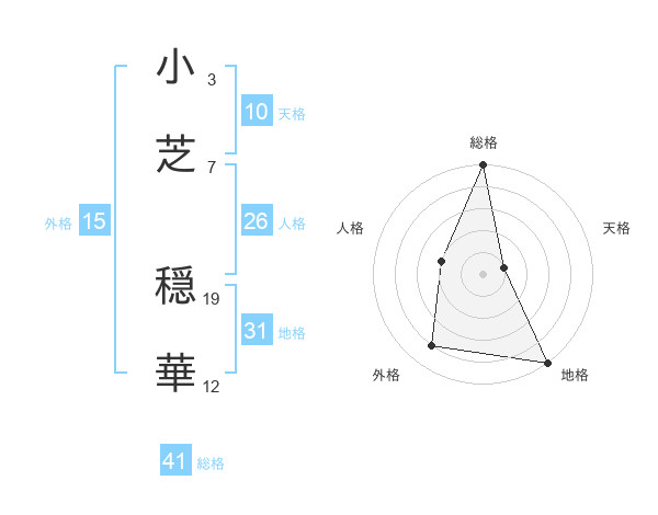 小芝 穏華さんを姓名の画数から五運を鑑定