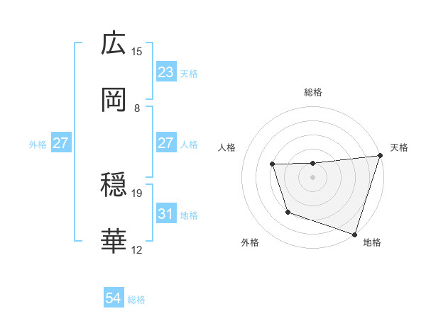 広岡 穏華さんの総格は54画の1点!