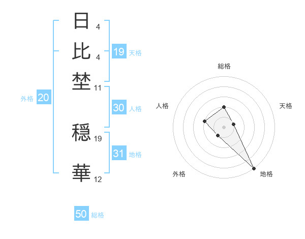 日比埜 穏華さんを姓名の画数から五運を鑑定