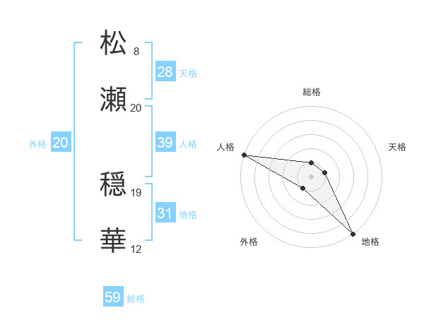 松瀬 穏華さんの外格は20画の1点!