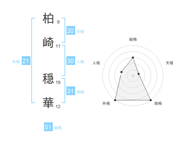 柏崎 穏華さんの総格は51画の3点!
