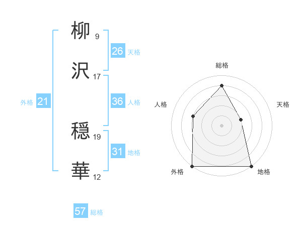 柳沢 穏華さんの外格は21画の5点!