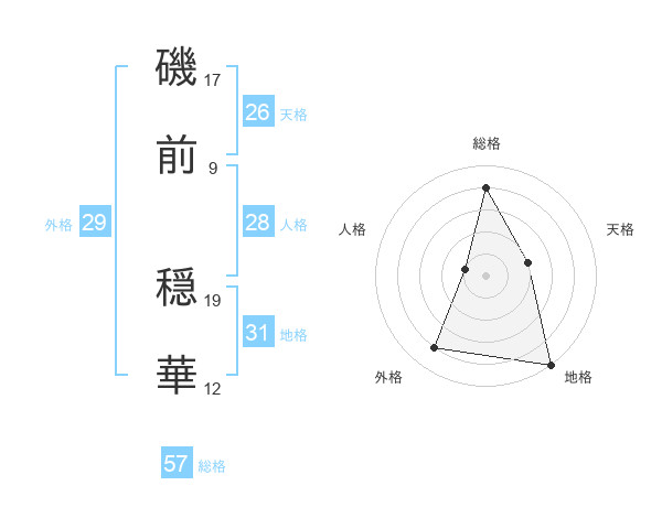 磯前 穏華さんの外格は29画の4点!