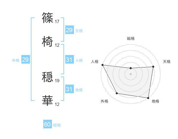 篠椅 穏華さんの外格は29画の4点!