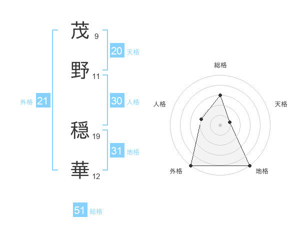 茂野 穏華さんを姓名の画数から五運を鑑定