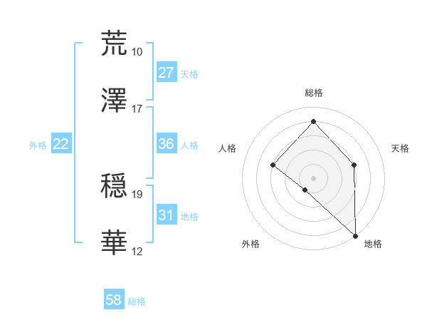 荒澤 穏華さんの総格は58画の4点!