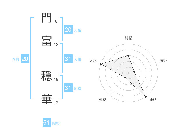 門富 穏華さんの総格は51画の3点!