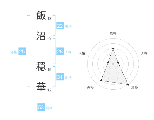 飯沼 穏華さんの総格は53画の3点!