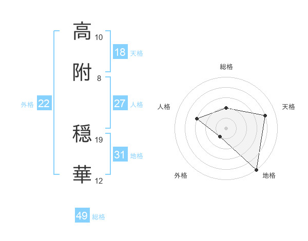 高附 穏華さんの総格は49画の2点!