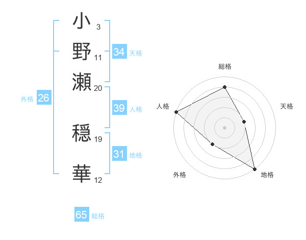 小野瀬 穏華さんを姓名の画数から五運を鑑定