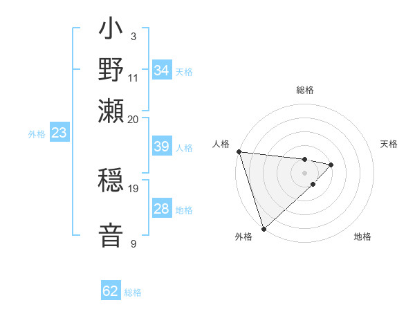 小野瀬 穏音さんを姓名の画数から五運を鑑定