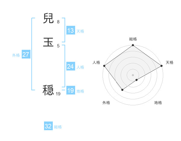 兒玉 穏さんの天格は13画の5点!