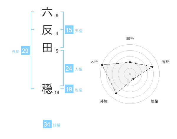 六反田 穏さんの天格は15画の4点!