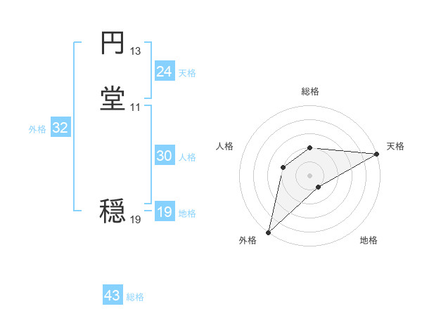 円堂 穏さんの総格は43画の2点!