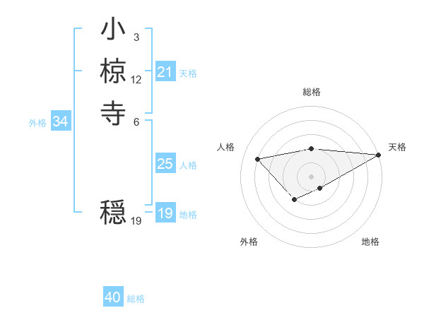 小椋寺 穏さんの天格は21画の5点!