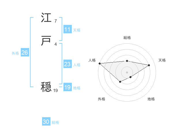 江戸 穏さんの総格は30画の2点!