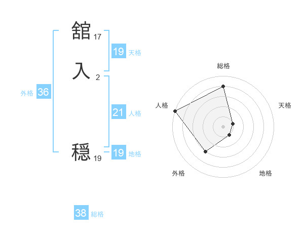 舘入 穏さんの総格は38画の4点!