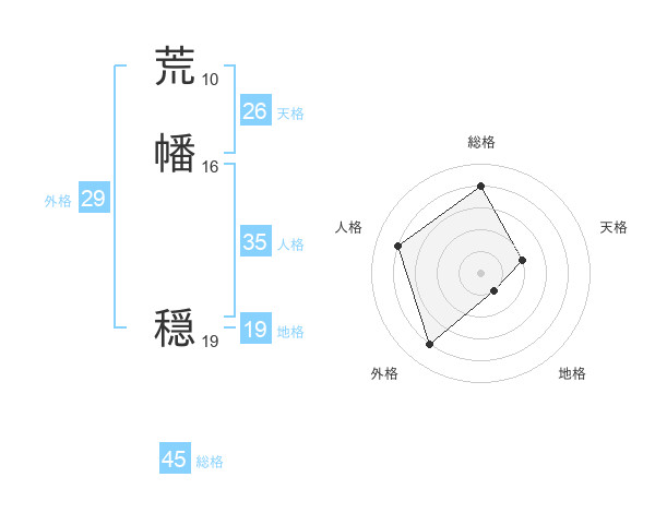 荒幡 穏さんの総格は45画の4点!
