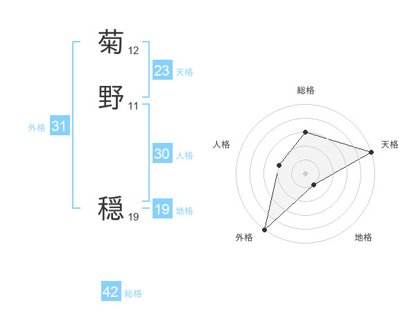 菊野 穏さんの天格は23画の5点!