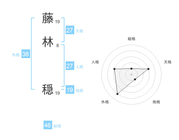 藤林 穏さんの外格は38画の4点!