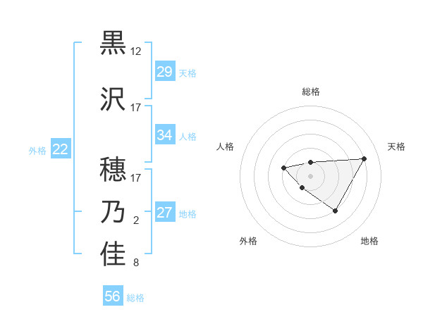 黒沢 穗乃佳さんを姓名の画数から五運を鑑定