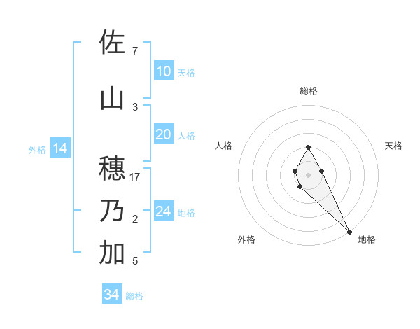佐山 穗乃加さんの総格は34画の2点!