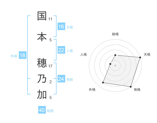 国本 穗乃加さんの総格は40画の2点