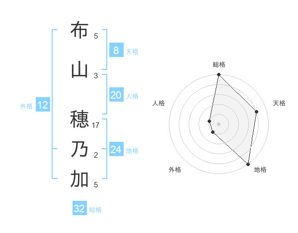布山 穗乃加さんの総格は32画の5点!