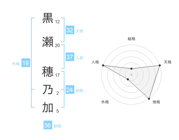 黒瀬 穗乃加さんを姓名の画数から五運を鑑定